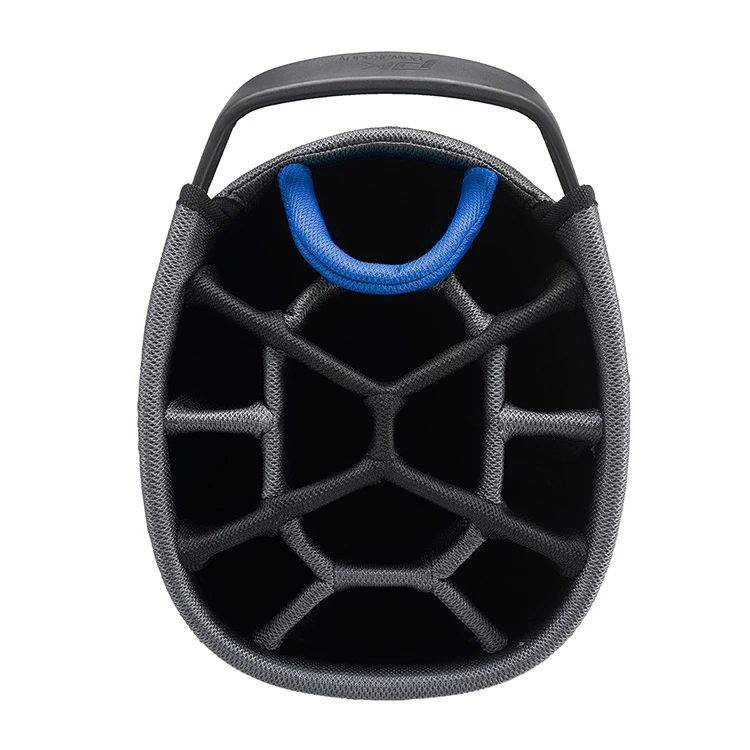 | PowaKaddy Premium Edition Golf Cart Bag Feature Packed With Premium Construction The new PowaKaddy Premium cart bag has been developed to provide all the organisation and storage you need in a golf bag and is constructed with premium lightweight vinyl and PU materials. An easy lift 3 handle divider top incorporates a large integrated putter bay designed to accommodate larger putter grips whilst the 14-way divider system gives each club a place to prevent snagging whilst retrieving or replacing your club. The 9 spacious storage pockets are conveniently positioned for quick access for all your golfing essentials which includes a water-resistant valuables pocket, insulated cooler pocket, apparel pockets, accessory pockets & more. The PowaKaddy Key-Lock™ anti twist system on the base of the bag stops lateral movement of your bag when used with a PowaKaddy electric cart for greater stability. |